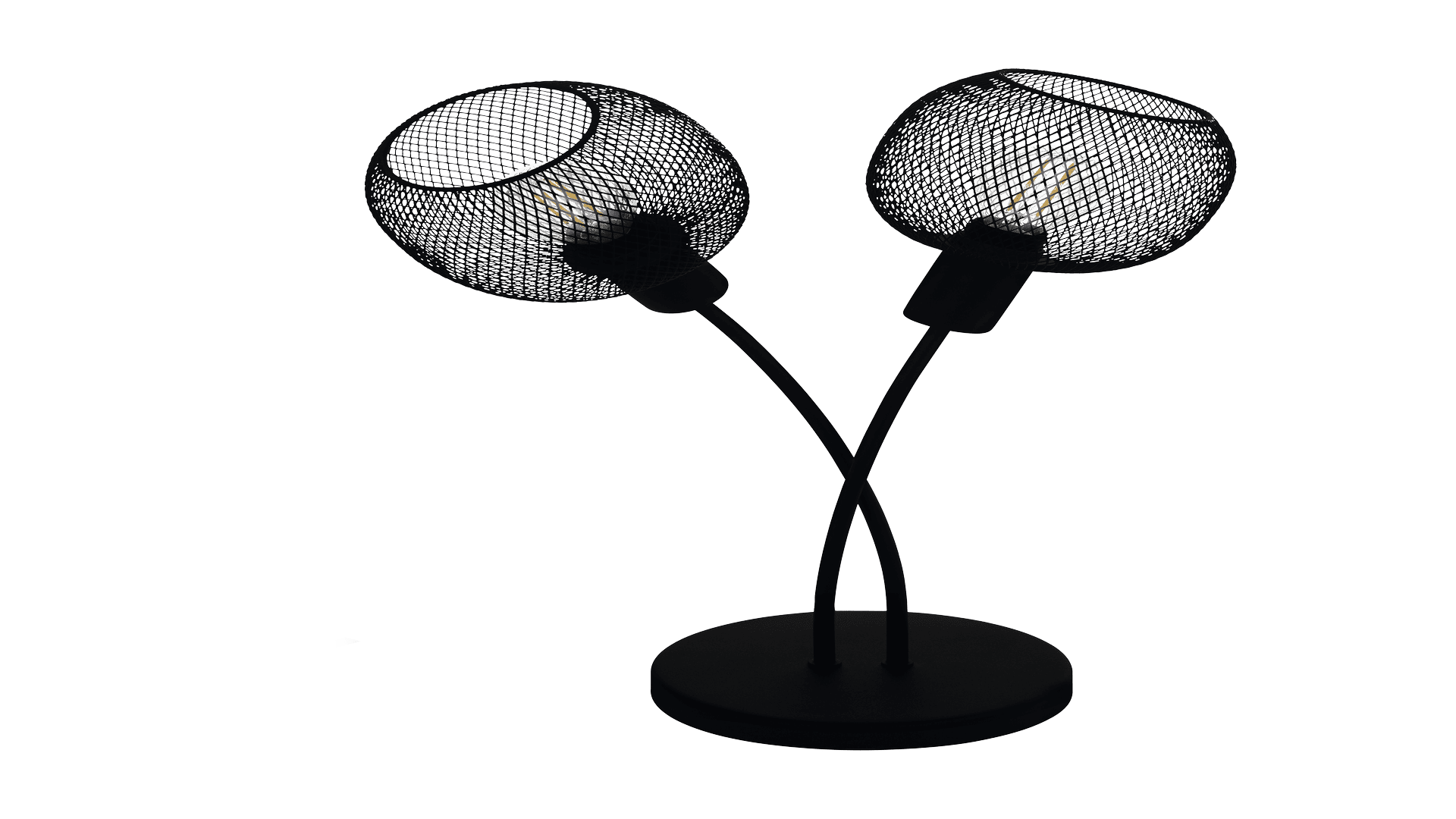 Die Tischleuchte WRINGTON 1 ist aus einem schwarzen leicht geschwungenen Metall-Fuß gefertigt und mit zwei runden Lampenschirmen aus schwarzem Streckgitter kombiniert. Durch den trendigen Gitterschirm entstehen faszinierende Licht- und Schattenspiele, sobald die Leuchte eingeschaltet ist. Die besondere Optik der Tischlampe fügt sich hervorragend in moderne und minimalistische Einrichtungen ein und bietet einen Blickfang in Ihrem Raum – egal ob im Schlafzimmer auf dem Nachttisch, im Wohnzimmer oder im Flur auf einem Sideboard. Ebenso ist ein bequemes Ein- und Ausschalten über einen Schalter am Kabel möglich. Die abgebildeten Filament-Leuchtmittel sind nicht im Lieferumfang enthalten. Geeignet ist die Leuchte für jedes Leuchtmittel mit E14-Sockel.