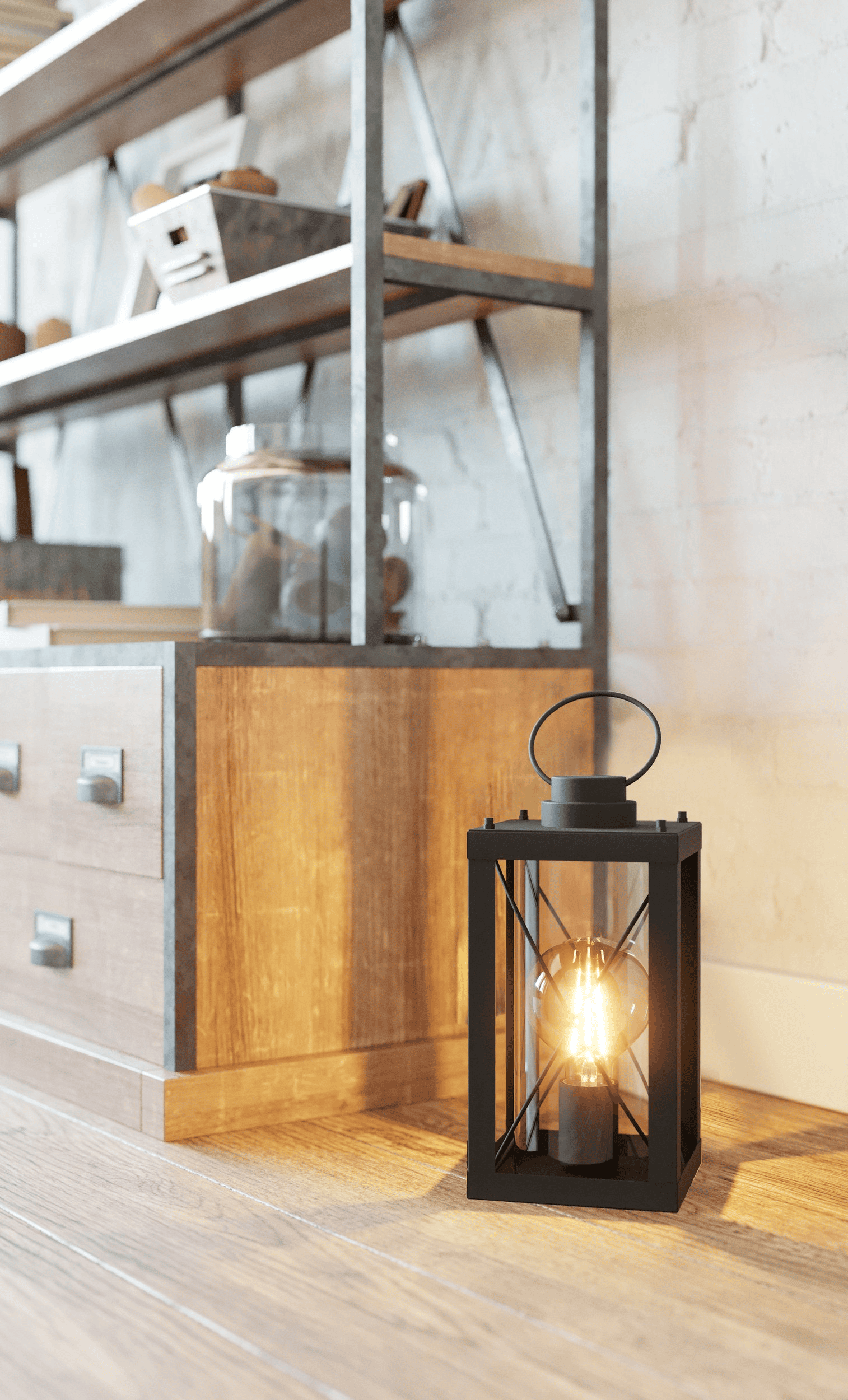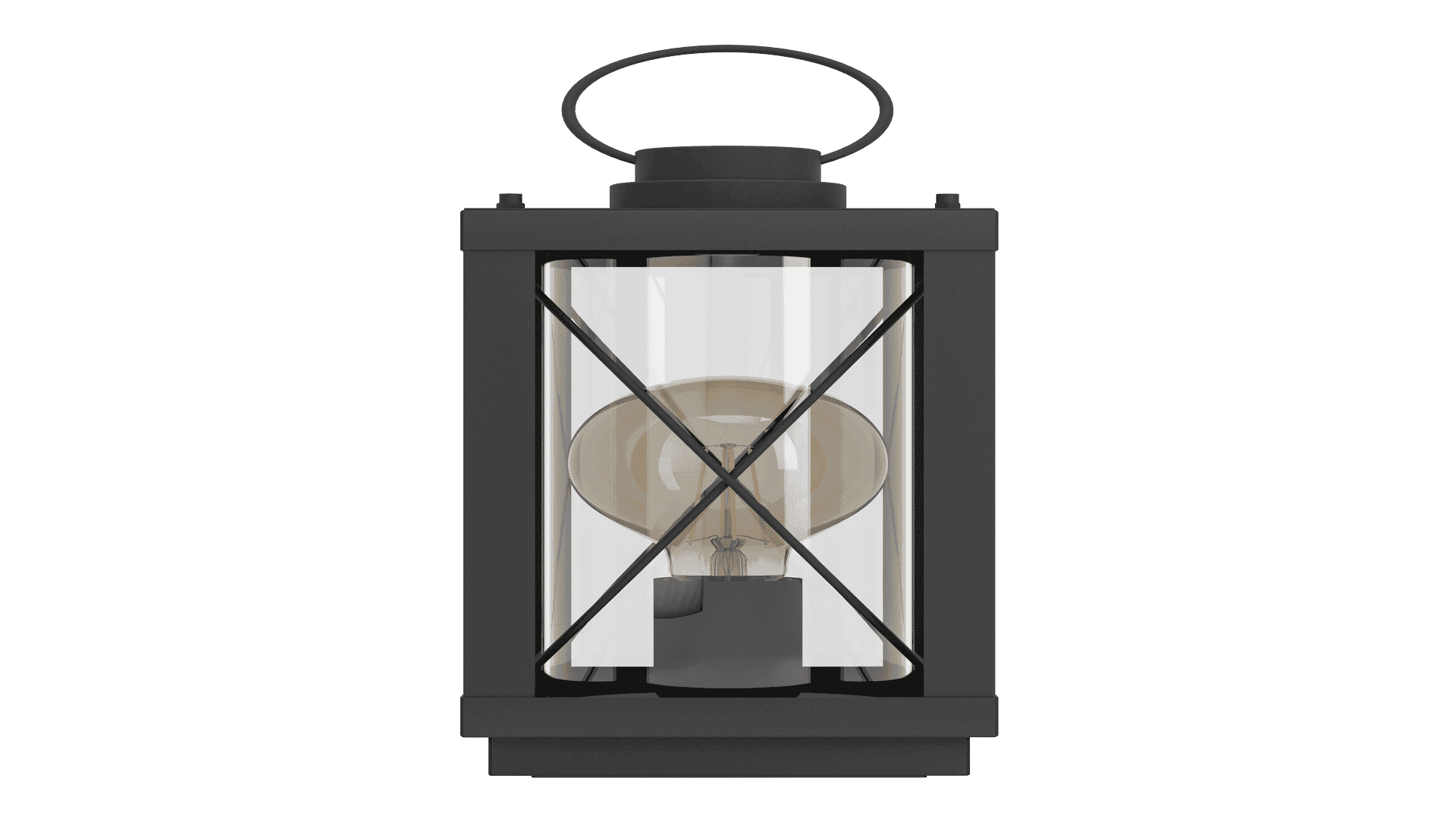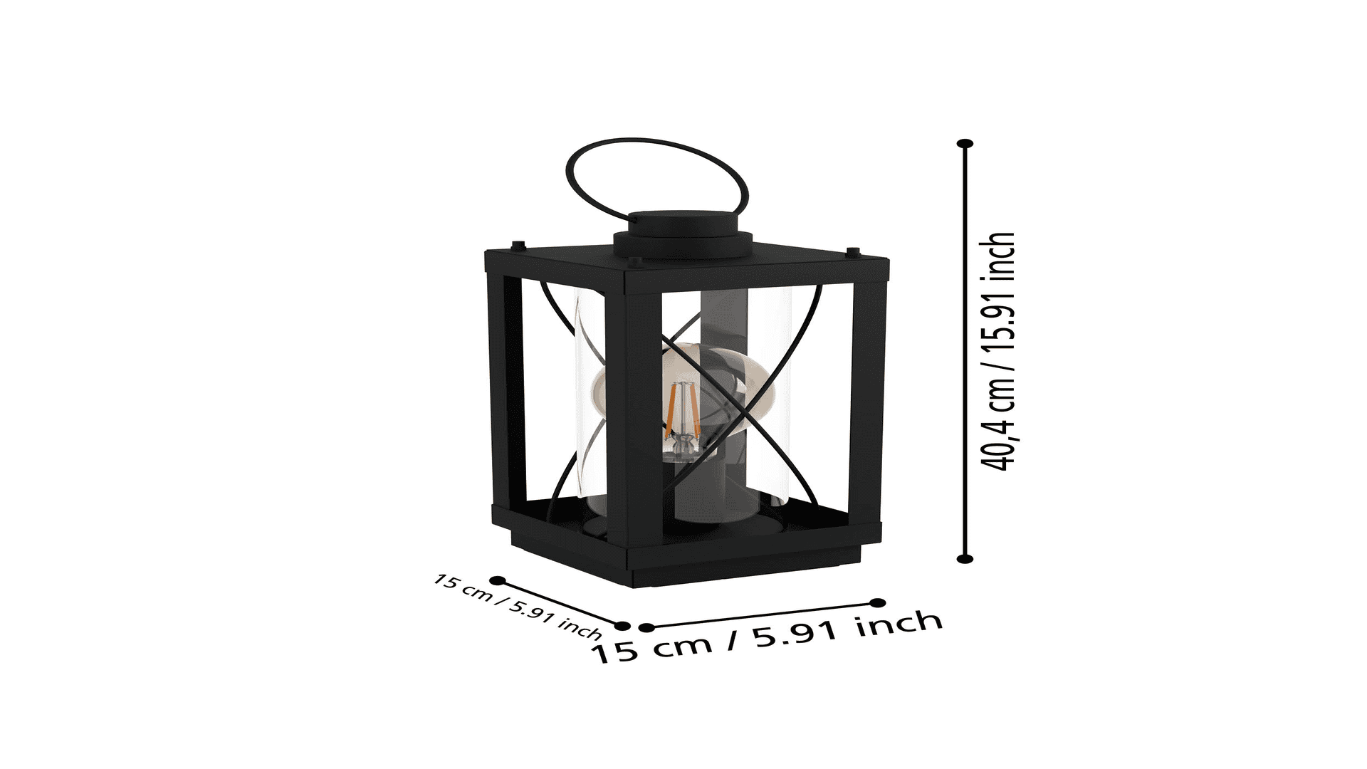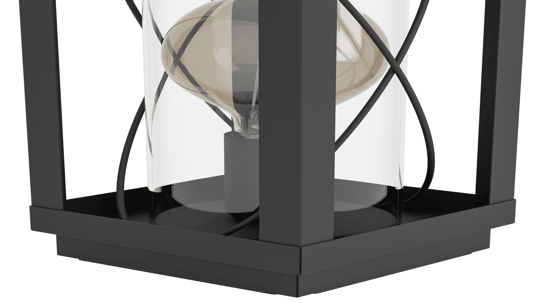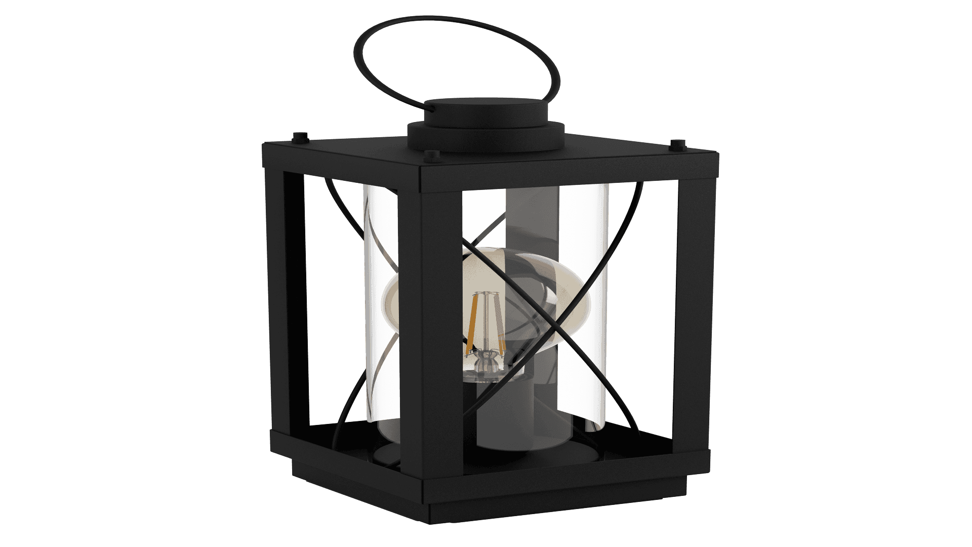Die Tischleuchte BRADFORD 1 im klassischen Laternen-Design ist aus einem rechteckigen schwarzen Metall-Körper mit gekreuzten Drähten und einem schwarzen Metall-Henkel gefertigt. Die vier seitlichen, klaren Glasflächen ermöglichen einen freien Blick auf das innenliegende Leuchtmittel. Die Tischlampe lässt sich über einen Schalter am Kabel bequem Ein- und Ausschalten und fügt sich nahtlos in verschiedene Einrichtungsstile ein. Egal ob im Schlafzimmer auf dem Nachttisch, Wohnzimmer, Esszimmer oder Flur – die moderne Tischleuchte bietet für jeden Wohnraum eine angenehme Beleuchtung. Das abgebildete Filament-Leuchtmittel ist nicht im Lieferumfang enthalten. Geeignet ist die Leuchte für jedes Leuchtmittel mit E27-Sockel.