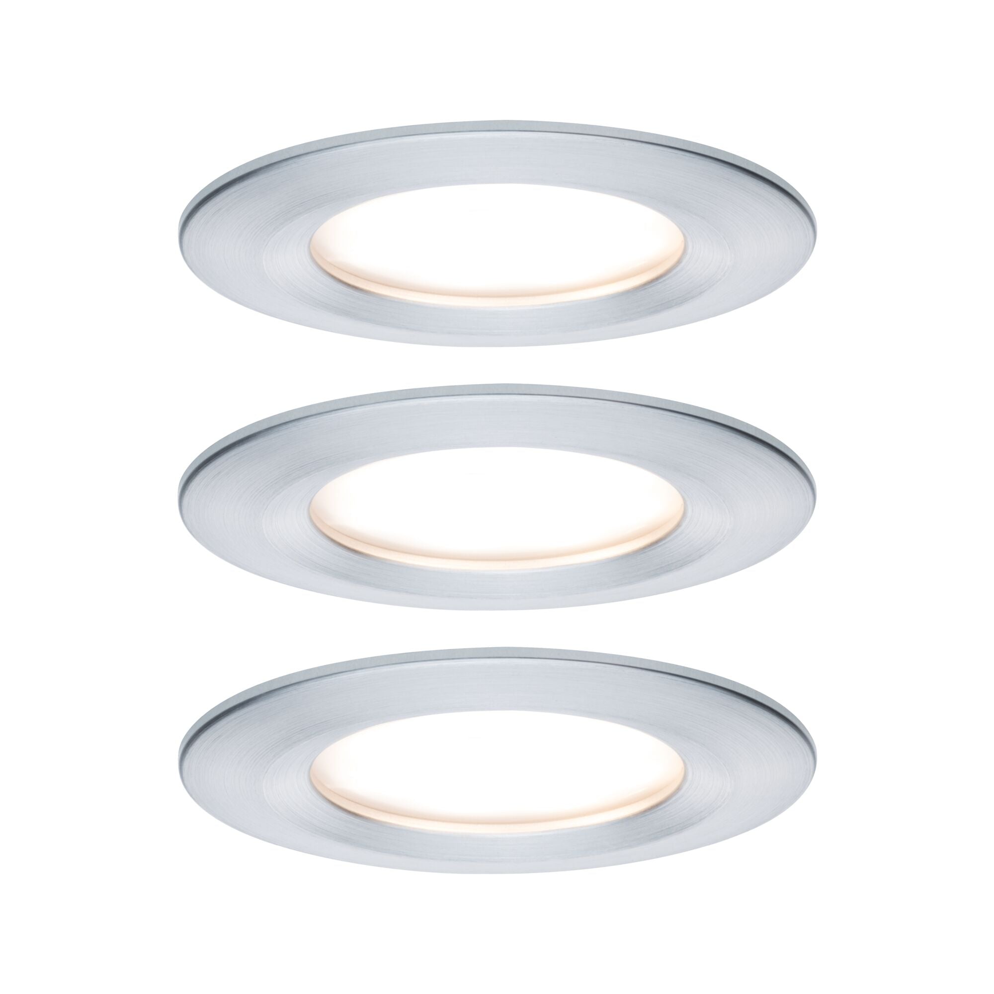Die runden Nova Einbaustrahler in Alu gedreht mit 3x6W und 3x470lm, bieten gutes Licht, stimmiges Design und hohe Energieeffizienz. Die puristische Optik wird nicht von Sprengringen gestört: Da das Leuchtmittel von hinten eingesetzt wird ist kein Sprengring notwendig. Dank 230V-Direktanschluss, können die Leuchten ganz einfach uneingeschränkt miteinander verkettet werden. Durch die unkomplizierte Fixierung mit Haltefedern, bleibt die Zimmerdecke auch nach mehrmaligem Ein- und Ausbau unbeschädigt. Im Lieferumfang sind effiziente und langlebige Coin LED-Leuchtmittel enthalten, die mit ihrem warmweißen Licht für ein stimmungsvolles Ambiente sorgen. Dank integrierter 3-Step-Dim-Funktion, kann sie durch mehrmaliges Betätigen eines handelsüblichen Lichtschalters in drei Stufen gedimmt werden.