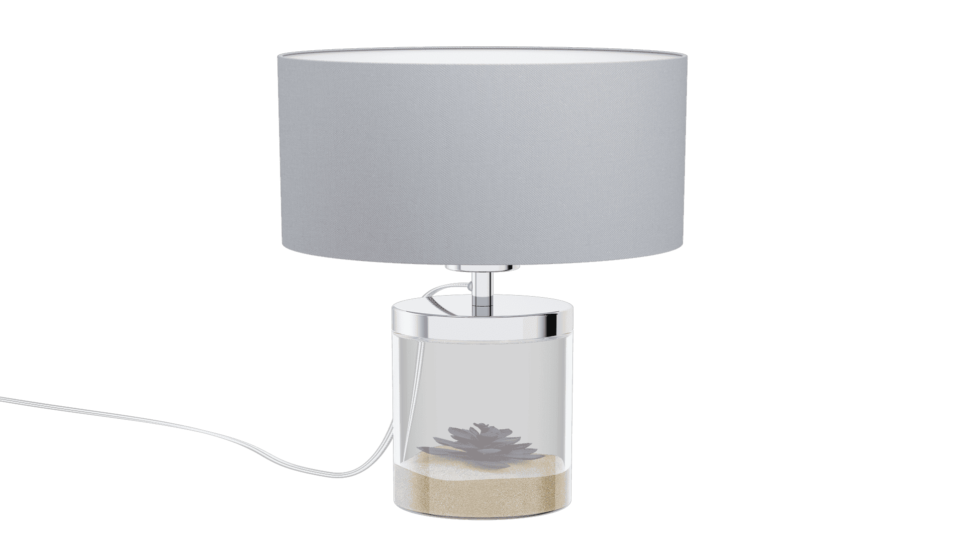 Die Tischleuchte LIDSING ist mit einem Lampenfuß aus klarem Glas mit einem chromfarbenen Metall-Element sowie einem Lampenschirm aus grauem Textil gefertigt. Zudem bietet der Lampenfuß die Möglichkeit für eine individuelle Dekoration im Inneren des Leuchtenfußes. Die Tischlampe fügt sich stilvoll in moderne Einrichtungen ein. Ebenso ist ein bequemes Ein- und Ausschalten über einen Schalter am Kabel möglich. Dank Ihrer persönlichen Gestaltung bietet die Lampe einen außergewöhnlichen Blickfang in jedem Raum – egal ob im Schlafzimmer auf dem Nachttisch, im Wohnzimmer, Esszimmer oder im Flur auf dem Sideboard. Das Leuchtmittel ist nicht im Lieferumfang enthalten. Geeignet ist die Leuchte für jedes Leuchtmittel mit E27-Sockel.