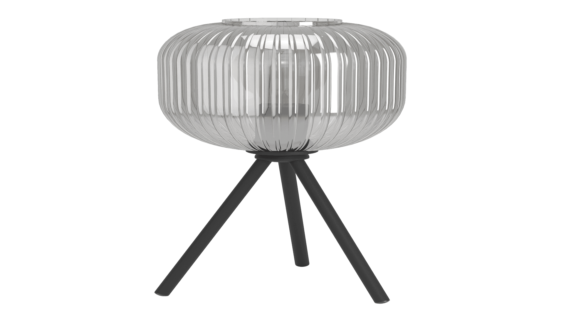 Die Tischleuchte MANTUNALLE besitzt einen schwarzen dreibeinigen Metallfuß und einen Lampenschirm aus bedampftem geriffeltem Glas in Schwarz-Transparent (fumé). Die Tischlampe fügt sich nahtlos in moderne und skandinavische Einrichtungen ein. Ebenso ist ein bequemes Ein- und Ausschalten über einen Schalter am Kabel möglich. Sie bietet eine stilvolle Beleuchtung für jeden Raum – egal ob im Schlafzimmer auf dem Nachttisch, im Wohnzimmer, Esszimmer oder im Flur auf dem Sideboard. Das Leuchtmittel ist nicht im Lieferumfang enthalten. Geeignet ist die Leuchte für jedes Leuchtmittel mit E27-Sockel.