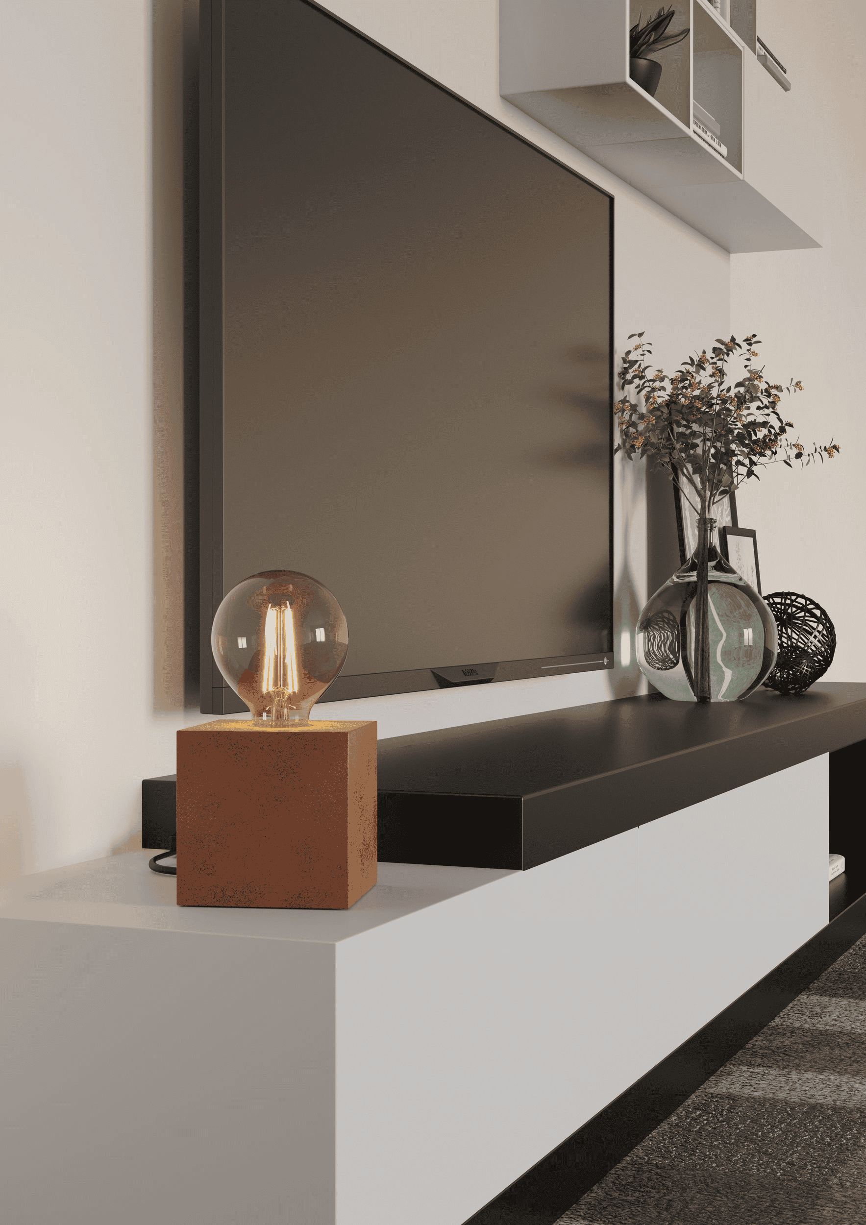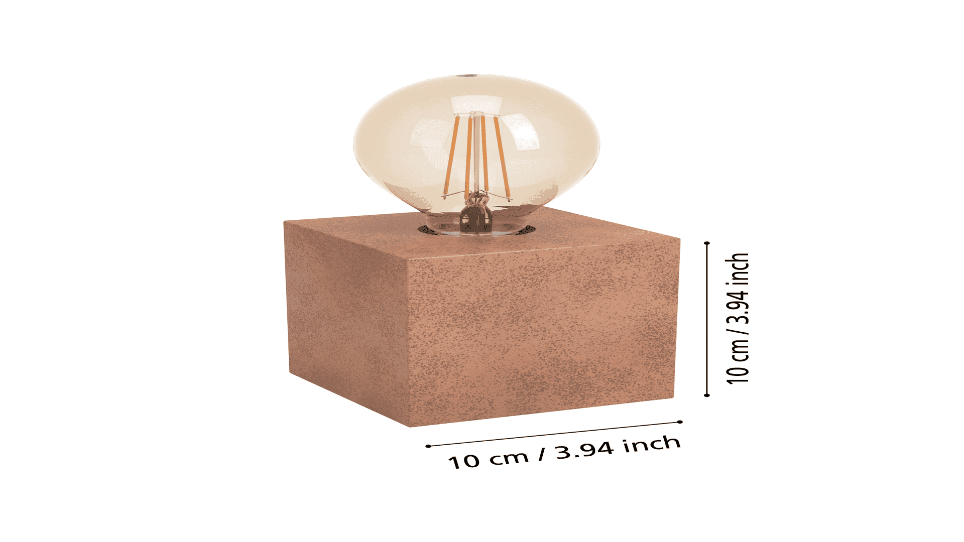 Die Tischleuchte PRESTWICK 1 besteht aus einem rostbraunen Metallwürfel, der mit einem freistehenden Leuchtmittel kombiniert wird. Die Tischlampe rundet insbesondere Einrichtungsstile im Industrial-Look ab und lässt sich über einen Schalter am Kabel bequem Ein- und Ausschalten. Sie bietet durch ihr schlichtes und zugleich rustikales Design eine ansprechende Beleuchtung für jeden Raum – egal ob im Schlafzimmer auf dem Nachttisch, im Wohnzimmer, Esszimmer oder im Flur auf dem Sideboard. Das abgebildete Filament-Leuchtmittel ist nicht im Lieferumfang enthalten. Geeignet ist die Leuchte für jedes Leuchtmittel mit E27-Sockel.