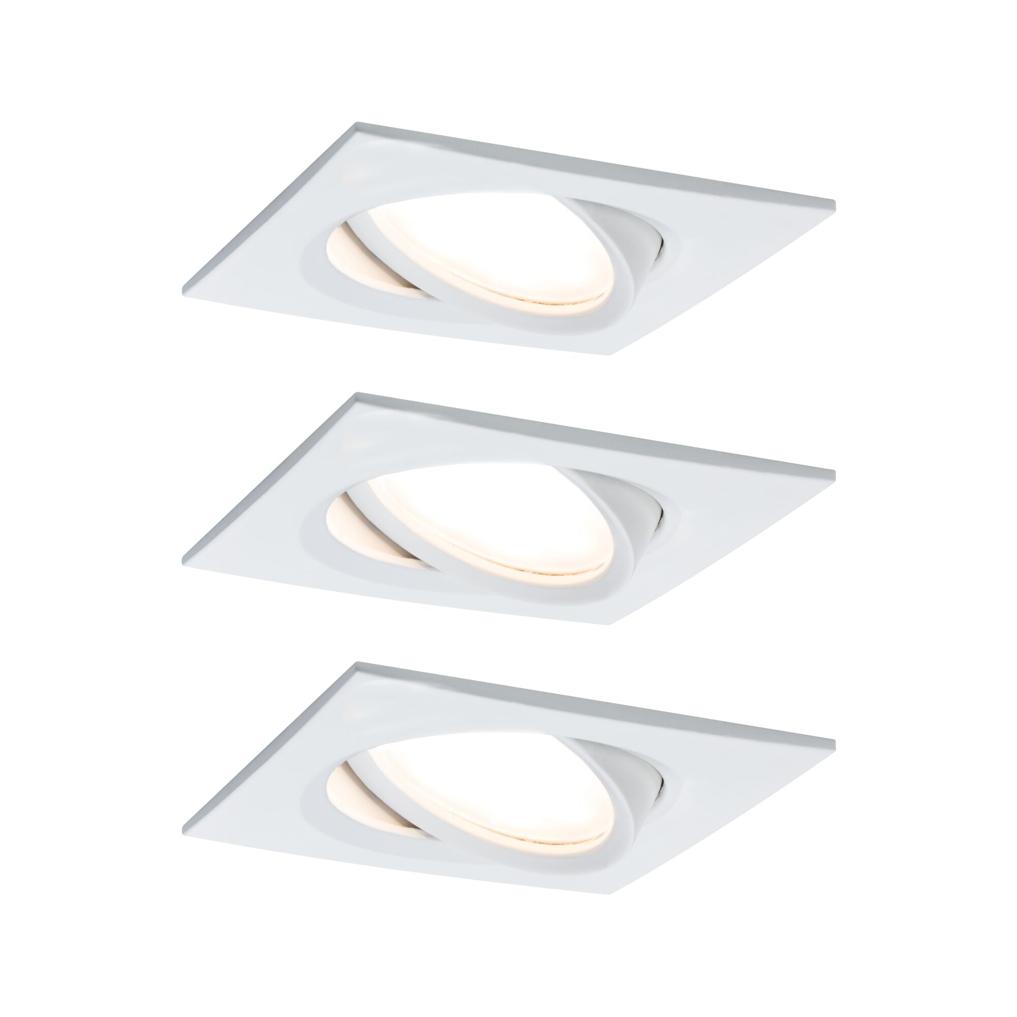 Die eckigen Nova Plus Einbauleuchten (3er-Set) in Weiß matt mit tauschbarem LED-Coin, eignen sich sowohl für Neuinstallationen als auch für den Austausch bestehender Installationen. Sie sind besonders flach und können deshalb in Decken mit einem Hohlraum von nur 30 Millimetern eingebaut werden. Durch die Verkettung der Einzelleuchten mittels Schnellklemmen, lassen sie sich schnell und einfach einbauen. Die Dimmfunktion ermöglicht eine individuelle Anpassung der Helligkeit und sorgt für warmweißes Arbeitslicht und gemütliche Wohlfühlbeleuchtung in einem. Dank der Schwenkbarkeit kann der Spot individuell ausgerichtet werden.
