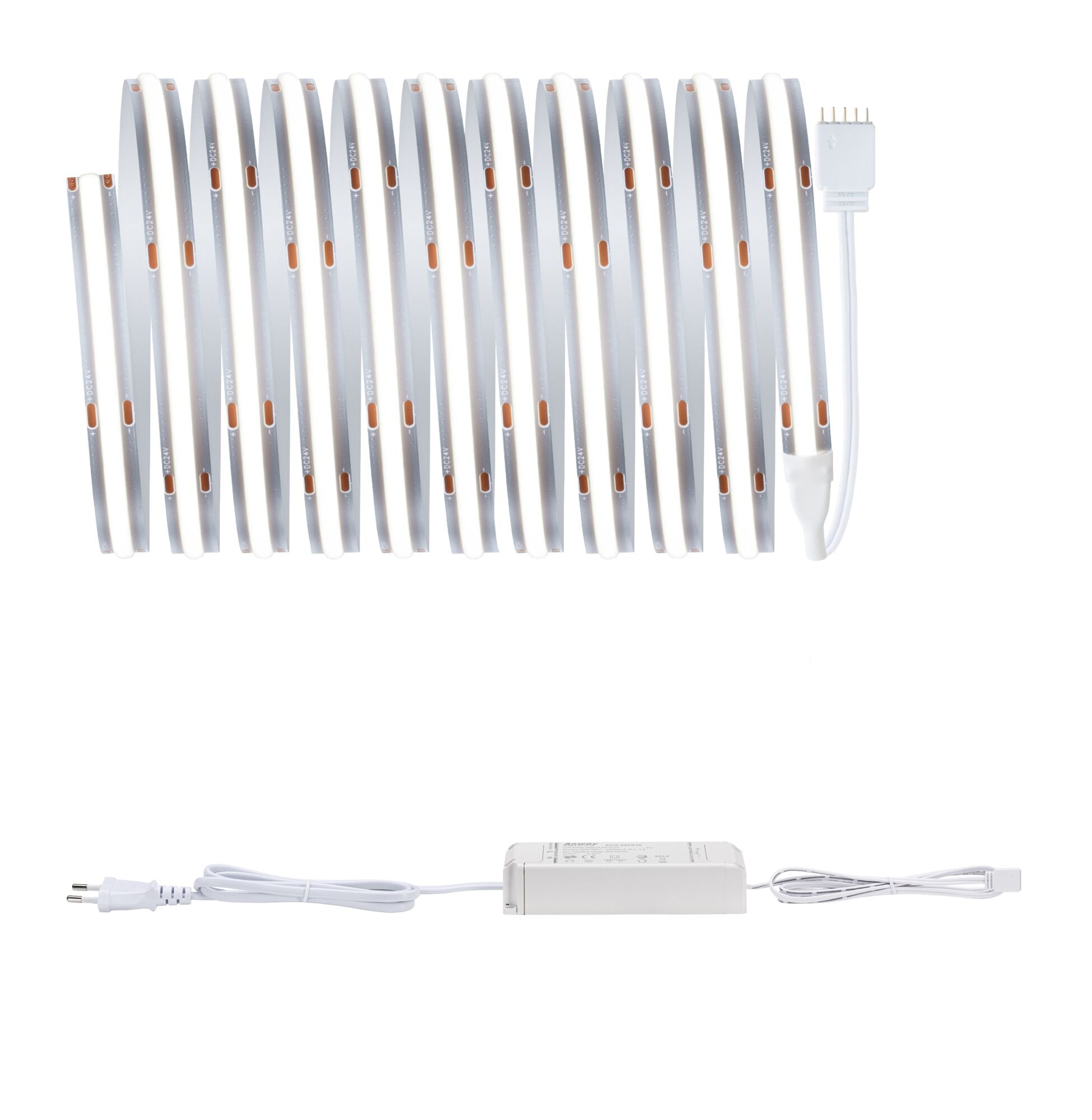 Ob Küchenarbeitsplatz, Werkstatt oder andere Arbeitsflächen – die MaxLED 500 Full-Line COB Strips eignen sich hervorragend als blendfreies Arbeitslicht. Das MaxLED 500 COB Basisset mit 19W, einer Länge von 3m und 480 LED´s/m erzeugt ein absolut homogenes Lichtbild ohne sichtbare Lichtpunkte. Durch den Lichtverbinder ist ein nahtloses Verbinden möglich und führt das lineare Lichtbild ohne Unterbrechung fort. Der Strip ist mit 10 mm besonders schmal und passt damit auch in sehr filigrane LED Profile. Der breite Ausstrahlwinkel von 180° verteilt das Licht optimal ohne Schattenbildung. Die durchgängige Beschichtung schützt die LEDs vor Staub und Feuchtigkeit, die Kontaktstellen haben IP20. Das tageslichtweiße Basisset lässt sich mit dem passenden Einzelstrip einfach erweitern.