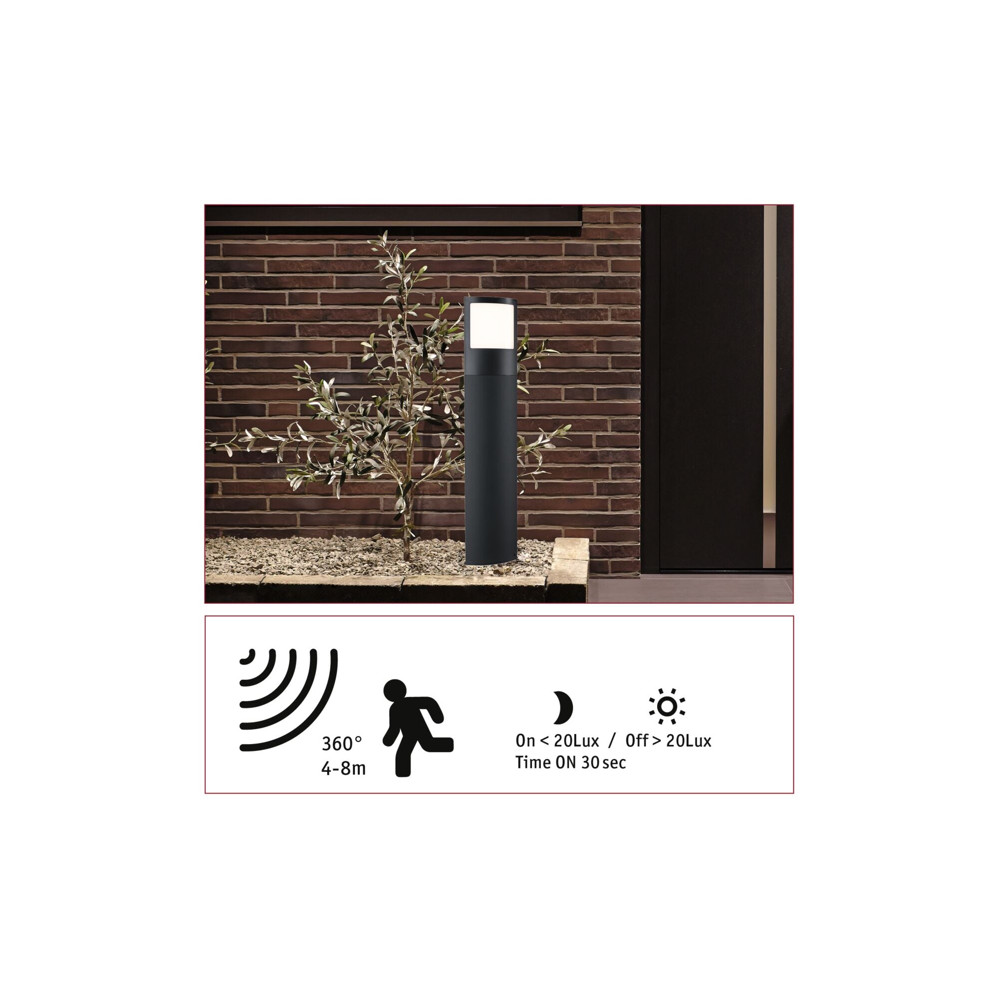 Die Pollerleuchte Padea mit einer Höhe von 847mm, IP44 und 700lm setzt blendfreie Lichtakzente und lässt keinen Besuch im Dunkeln stehen. Sie findet ihre Anwendung vor allem an Einfahrten und Wege in Küstennähe. Diese werden gleichmäßig und sicher ausgeleuchtet. Die anthrazitfarbene Oberfläche der Leuchte ist besonders korrosionsbeständig, daher wird die Leuchte von der salzhaltigen Luft weniger angegriffen. Mit einem IP-Schutz 44 ist die Leuchte spritzwassergeschützt. Sobald sich jemand nähert, wird das Licht dank des integrierten Bewegungsmelders für ca. 30 Sekunden automatisch eingeschaltet. Mit dem Nummern- und Buchstabensatz kann der Poller auch als Hausnummernleuchte eingesetzt werden.