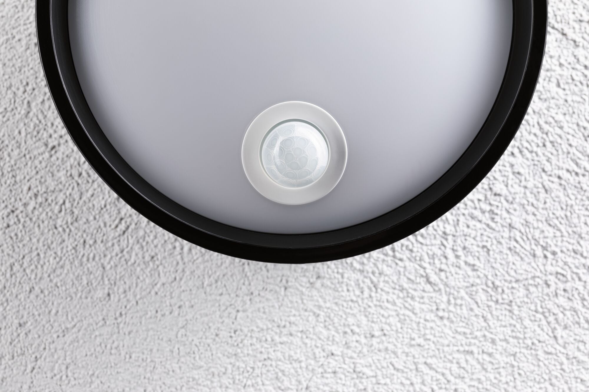 Die Außenwandleuchte Platomo mit Bewegungsmelder in Schwarz bringt Licht an die Außenwände. Die robuste 230V-Wandleuchte mit einer Leistung von 14,5W leuchtet den Eingangsbereich gleichmäßig und sicher aus. Die Oberfläche der Leuchte ist besonders korrosionsbeständig. Daher wird sie von der salzhaltigen Luft weniger angegriffen. Mit einem IP-Schutz 44 ist die Wandleuchte spritzwassergeschützt. Dank des integrierten Bewegungsmelders wird das Licht automatisch eingeschaltet, sobald sich jemand nähert. Die Leuchtdauer ist einstellbar.