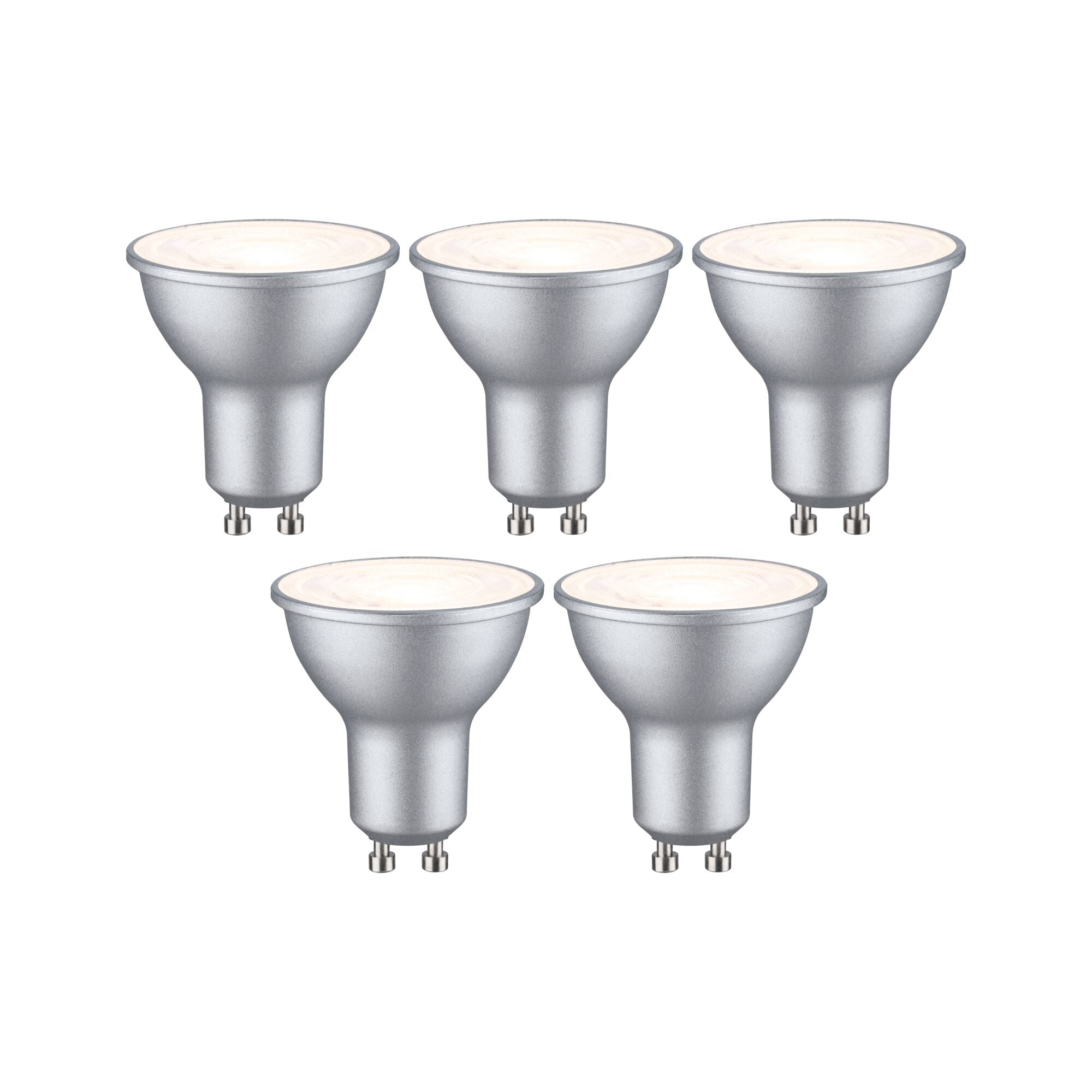 Reflektorlampen sorgen für gerichtetes Licht in Strahlern, Spots und Downlights. Der Lichtkegel von 38° setzt Deko und Einrichtungsgegenstände mit hellen 460 lm gezielt in Szene. Mit dem 5x4,9W Mehrfachpack rüsten Sie kostengünstig auf effiziente LED-Technik um oder bevorraten sich. Die Leuchtmittel haben eine angenehme Lichtfarbe und passen in jede handelsübliche GU10-Fassung. Die Paulmann LED-Lampen mit Eye friendly-Siegel bieten augenschonendes und komfortables Licht. Ob beim Arbeiten, Lesen oder Entspannen, die Lampen tragen zu bestem Sehkomfort bei. Der GU10-Reflektor ist in der Farbe Chrom matt erhältlich und passt perfekt zu den RAL-Materialfarben des URail-Systems.