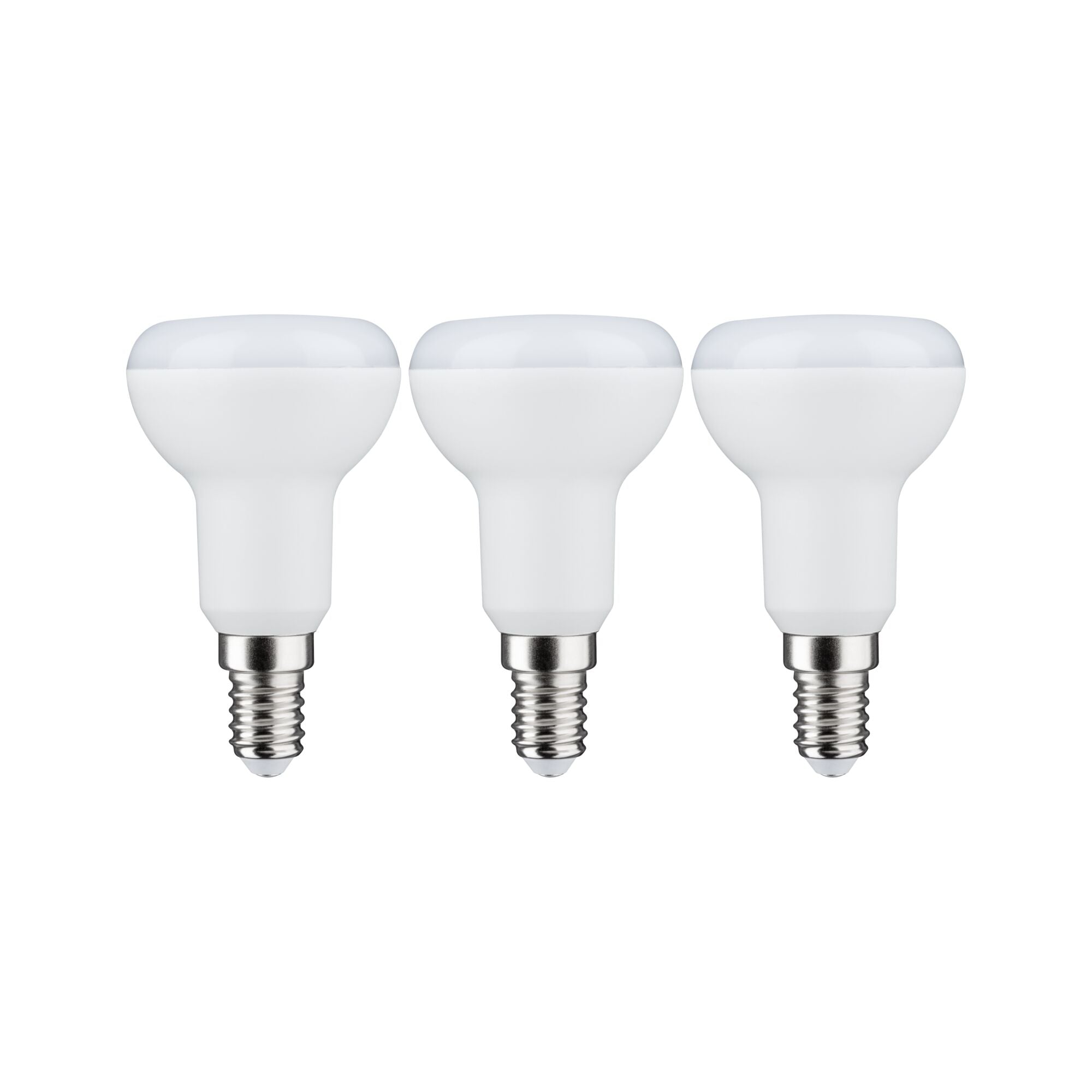 Reflektorlampen R50 mit E14-Fassung sorgen für gerichtetes Licht in Pendelleuchten, Spots und Strahlern. Sie geben ausschließlich nach vorne Licht ab und setzen durch gezieltes Anstrahlen Bilder, Dekoration oder ganze Wandflächen in Szene. Mit dem 3x5,5W Mehrfachpack rüsten Sie kostengünstig auf effiziente LED-Technik um oder bevorraten sich. Die Paulmann LED-Lampen mit Eye friendly-Siegel bieten augenschonendes und komfortables Licht. Ob beim Arbeiten, Lesen oder Entspannen, die Lampen tragen zu besten Sehkomfort bei.