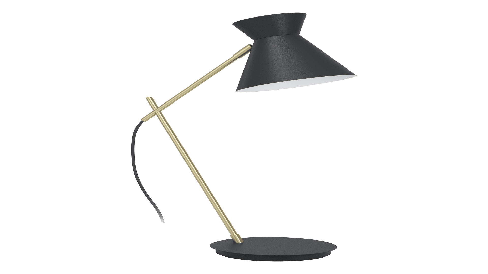 Die Tischleuchte AMEZAGA besteht aus einem filigranen Metall-Arm in Messing-Gebürstet, einem schwarzen Metall-Fuß und einem gleichfarbigen Metall-Schirm in ansprechender Form. Kombiniert wurde der Lampenschirm mit einer weißen Innenseite. Ein bequemes Ein- und Ausschalten ist über einen Wippschalter am Leuchtenkopf möglich. Die hochwertige Tischlampe im zarten und minimalistischen Design lässt sich optimal in moderne Einrichtungen integrieren und bietet eine wohnliche Beleuchtung im Schlafzimmer, Wohnzimmer oder Flur. Das Leuchtmittel ist nicht im Lieferumfang enthalten. Geeignet ist die Leuchte für jedes Leuchtmittel mit E27-Sockel.