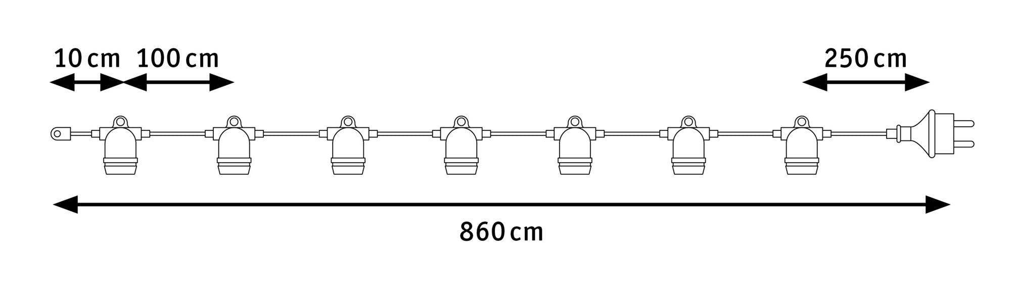 IP44 E27 8,6m max. 7x10W 230V Schwarz