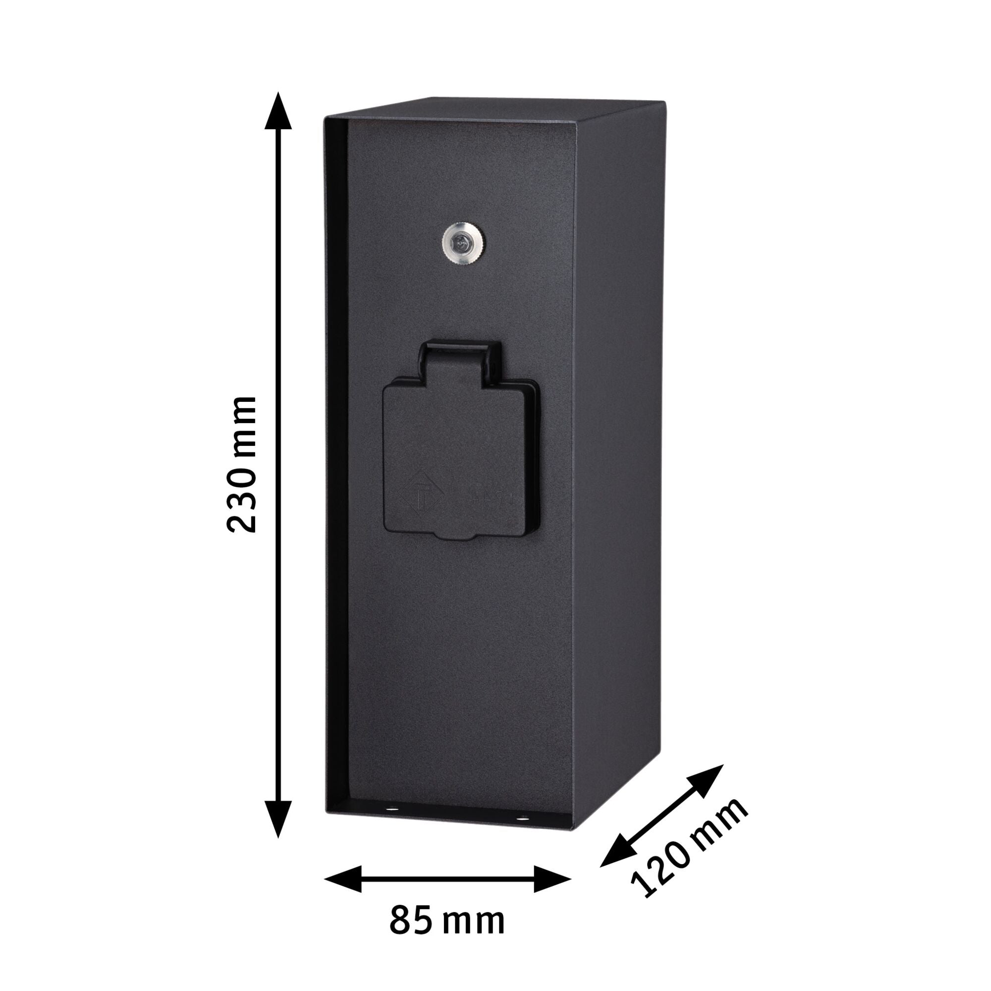 Die Steckdosensäule Rio mit Dämmerungssensor dient als Stromverteiler für den Außenbereich. Dank IP44 Spritzwasserschutz und Schutzkontaktsteckdosen eignet sie sich perfekt zur Steuerung des Gartenlichts.