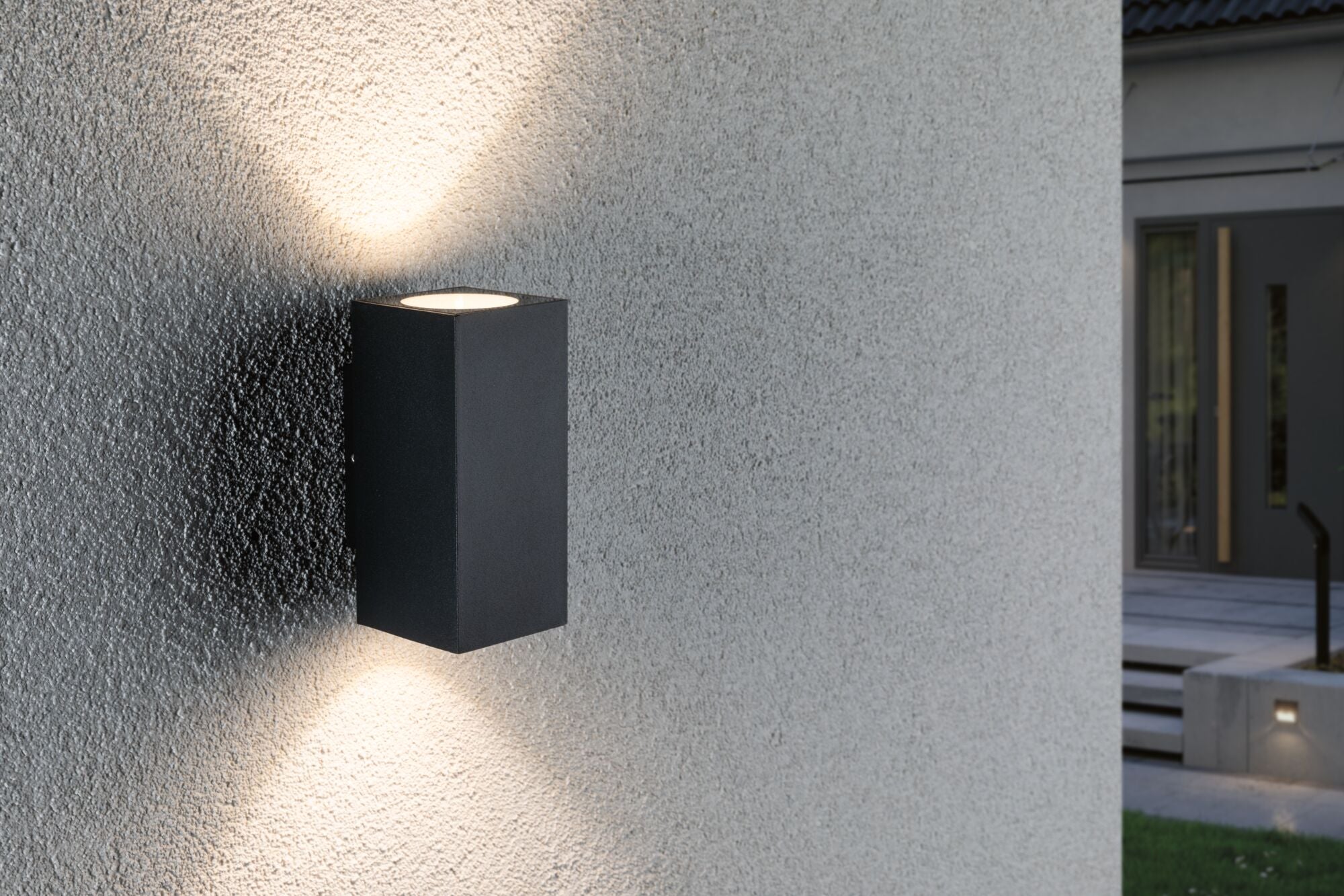Die Wandaufbauleuchte Flame in der Farbe Anthrazit mit max. 2x3,5W sorgt für attraktive Lichteffekte und eignet sich sowohl für den Innen- als auch Außenbereich. Dank ihrer Robustheit und effizienten LED-Technik ist sie sehr wartungsarm und langlebig. Sie setzt indirekte Lichtakzente an Wänden, wobei sie durch ihren IP-Schutz (IP44 - spritzwassergeschützt) vielseitig einsetzbar ist, zudem kann das Leuchtmittel frei gewählt werden.